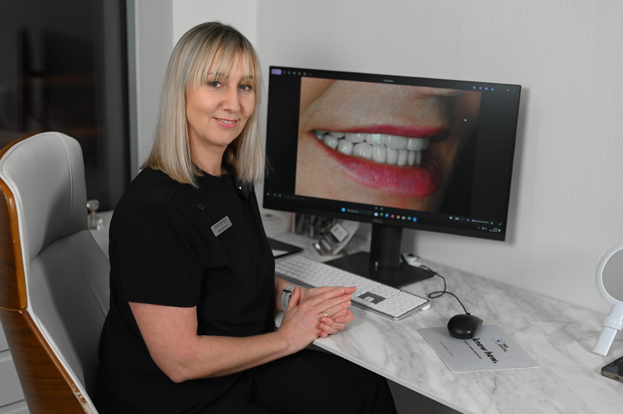 Swoją pracę rozdzielam pomiędzy zespół, aby zadbać o wszystkie elementy, które mają wpływ na bezpieczne i przewidywalne leczenie implantologiczne – od diagnostyki i przygotowania, przez etap chirurgiczny, aż po odbudowę protetyczną. Taka współpraca pozwala nam działać sprawnie, a pacjent ma poczucie, że cały proces jest prowadzony konsekwentnie i pod kontrolą.