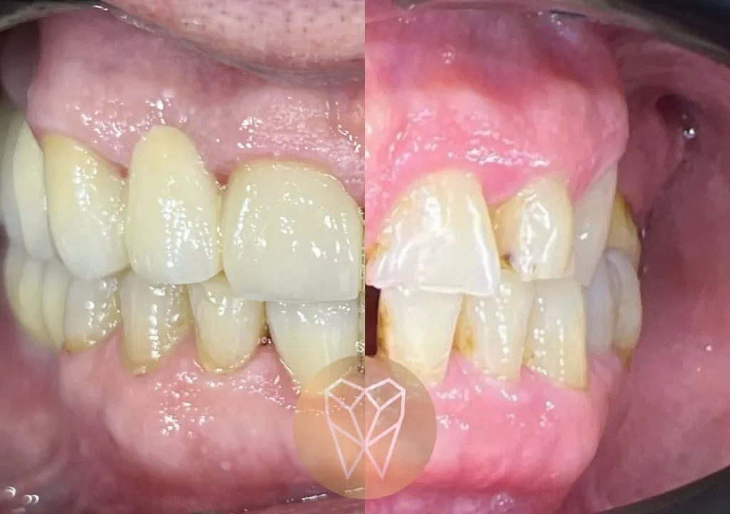 Metamorfoza trwała 6 miesięcy i została przeprowadzona przez dr Aleksandrę Janik. Pacjent cieszy się nowym uśmiechem i regularnie zgłasza się na kontrole oraz higienizację.
